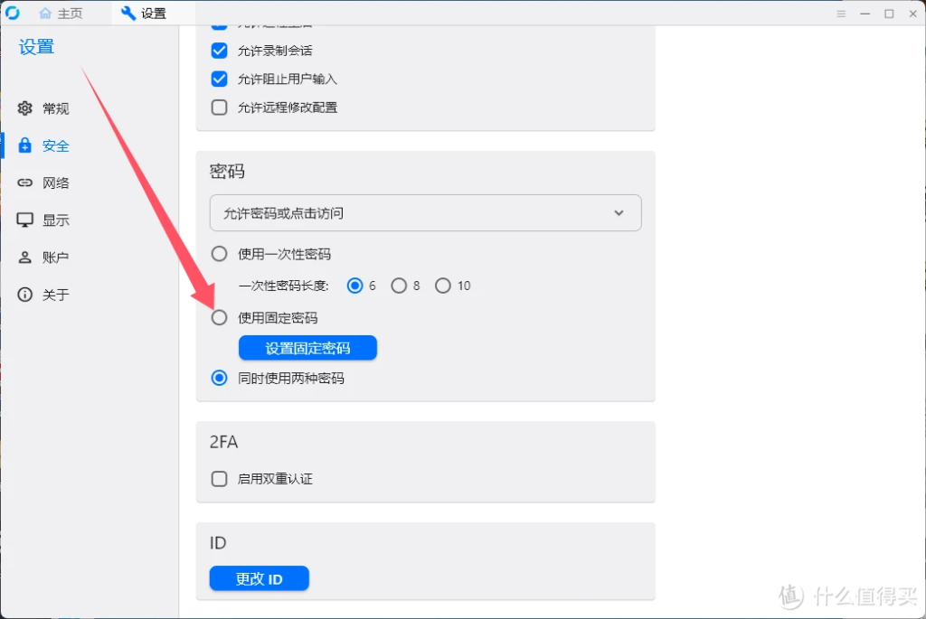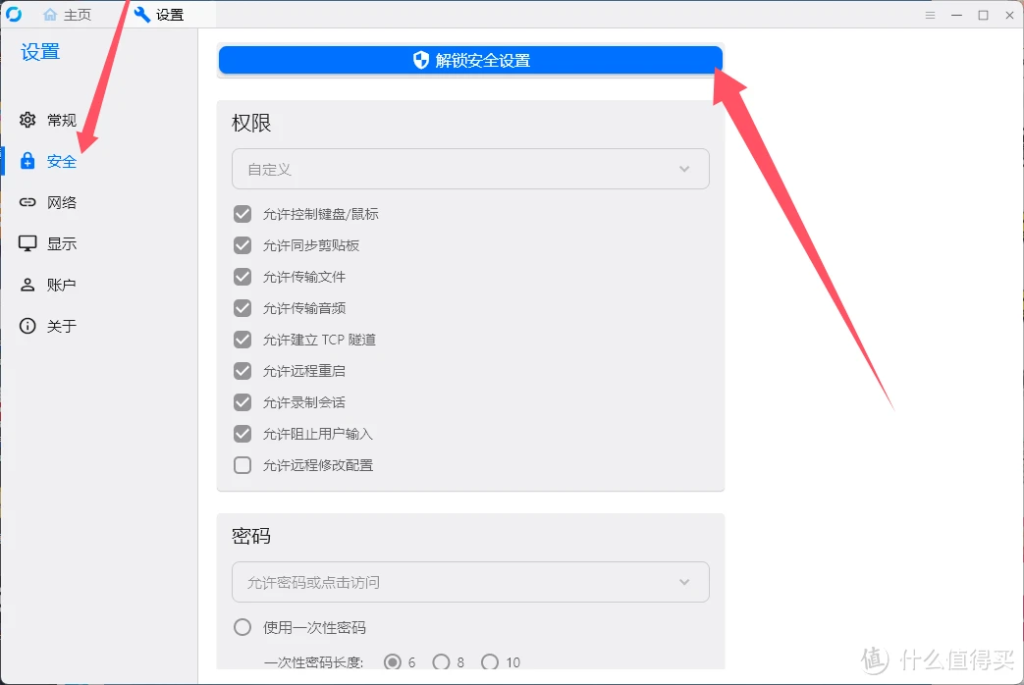 2. 找到安全设置,解锁后,在密码策略部分,为了长久访问,建议采用固定密码