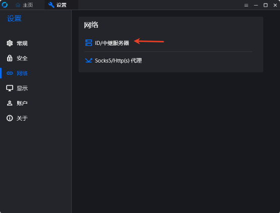 3.接着点击左侧的网络,同样先得解锁设置。配置中继服务器,填写域名及上文的KEY,点击应用